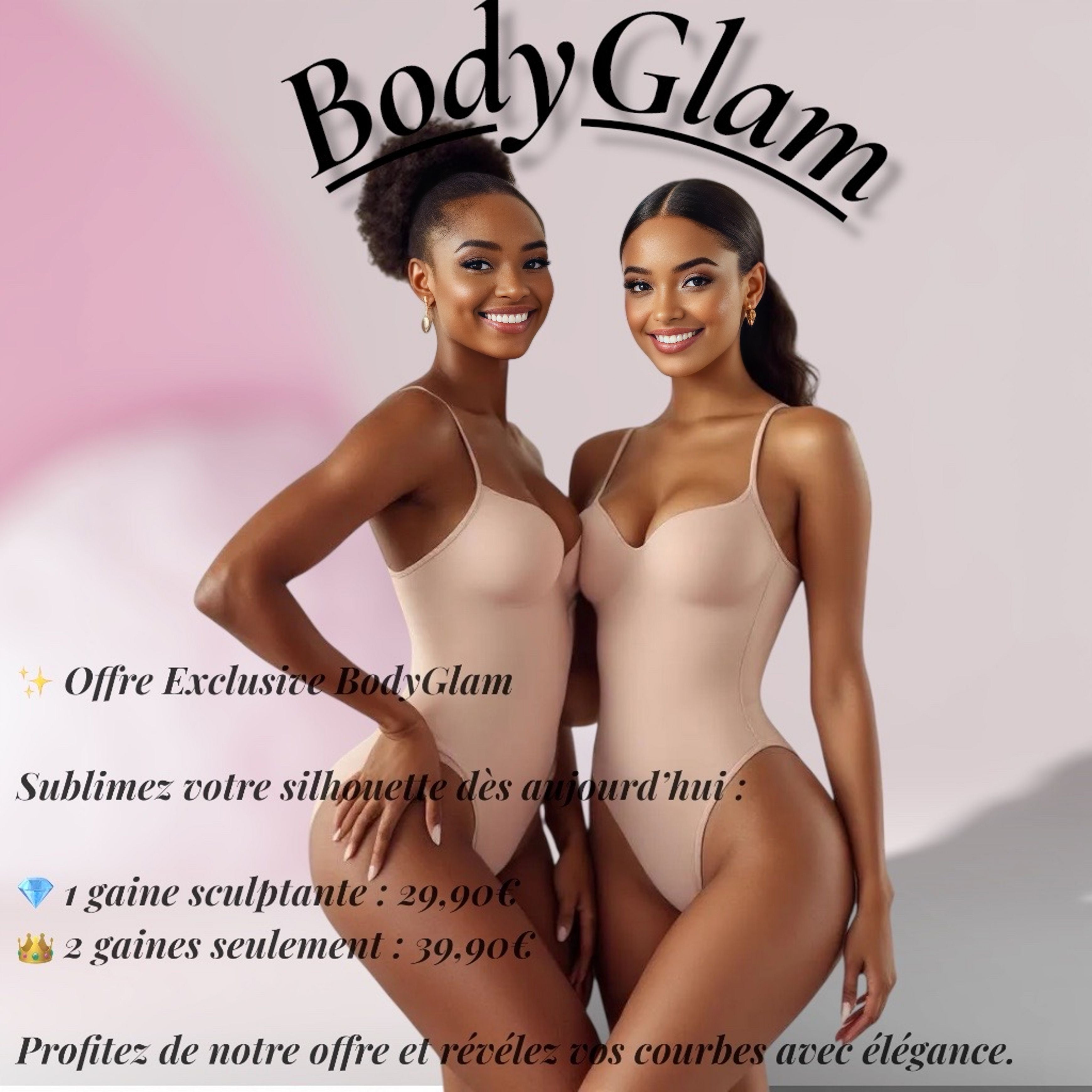 Découvrez les gaines BodyGlam conçues pour affiner la taille, lisser le ventre et sublimer vos courbes avec élégance.